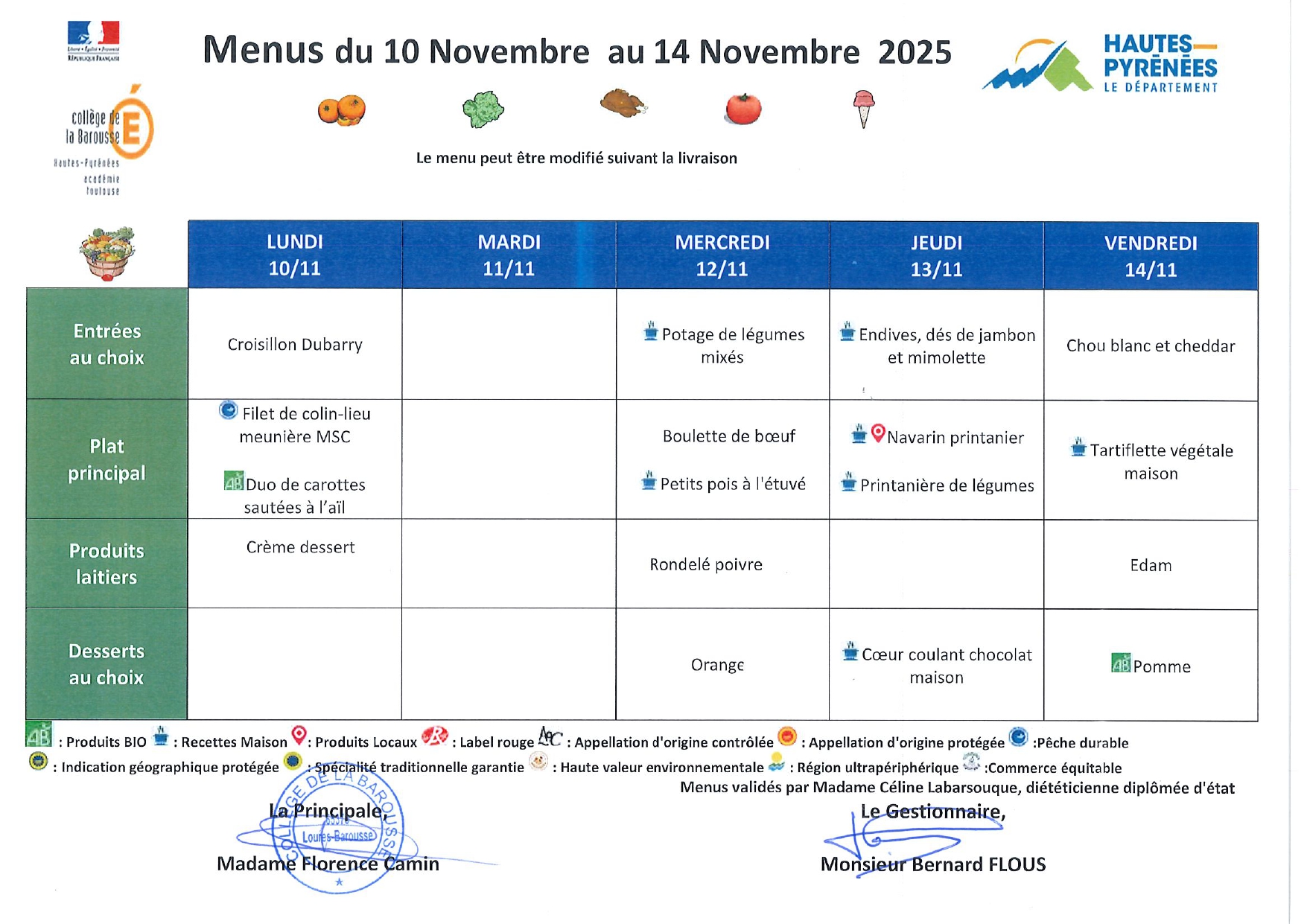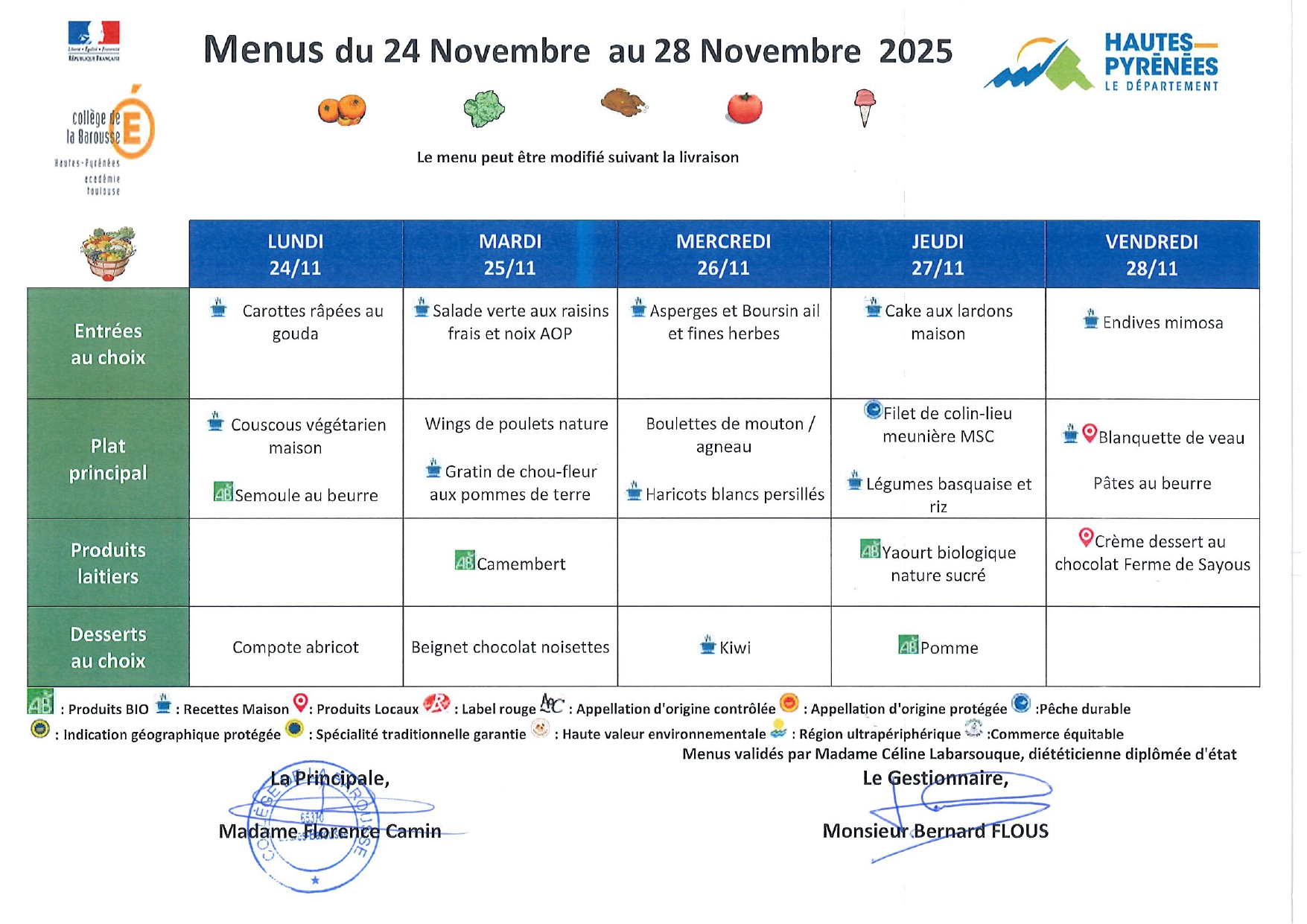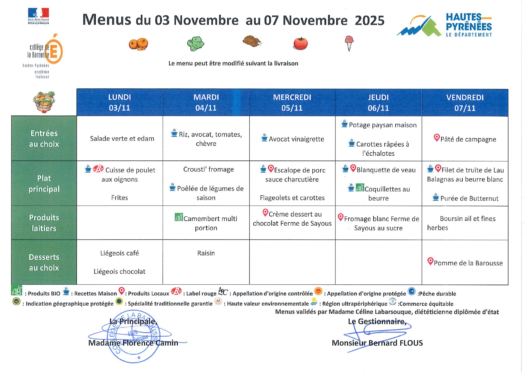 MENUS SELF période du 3 novembre au 19 décembre 2025