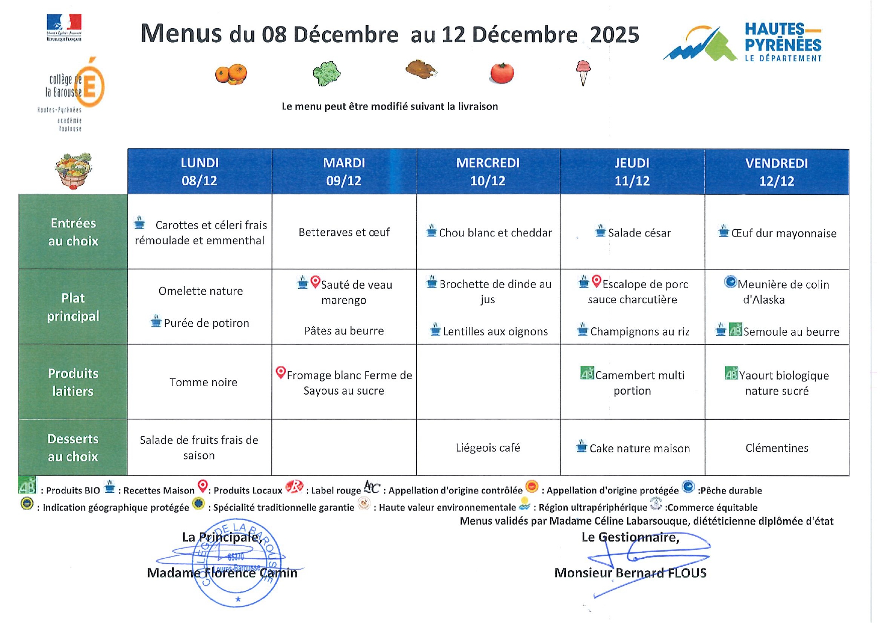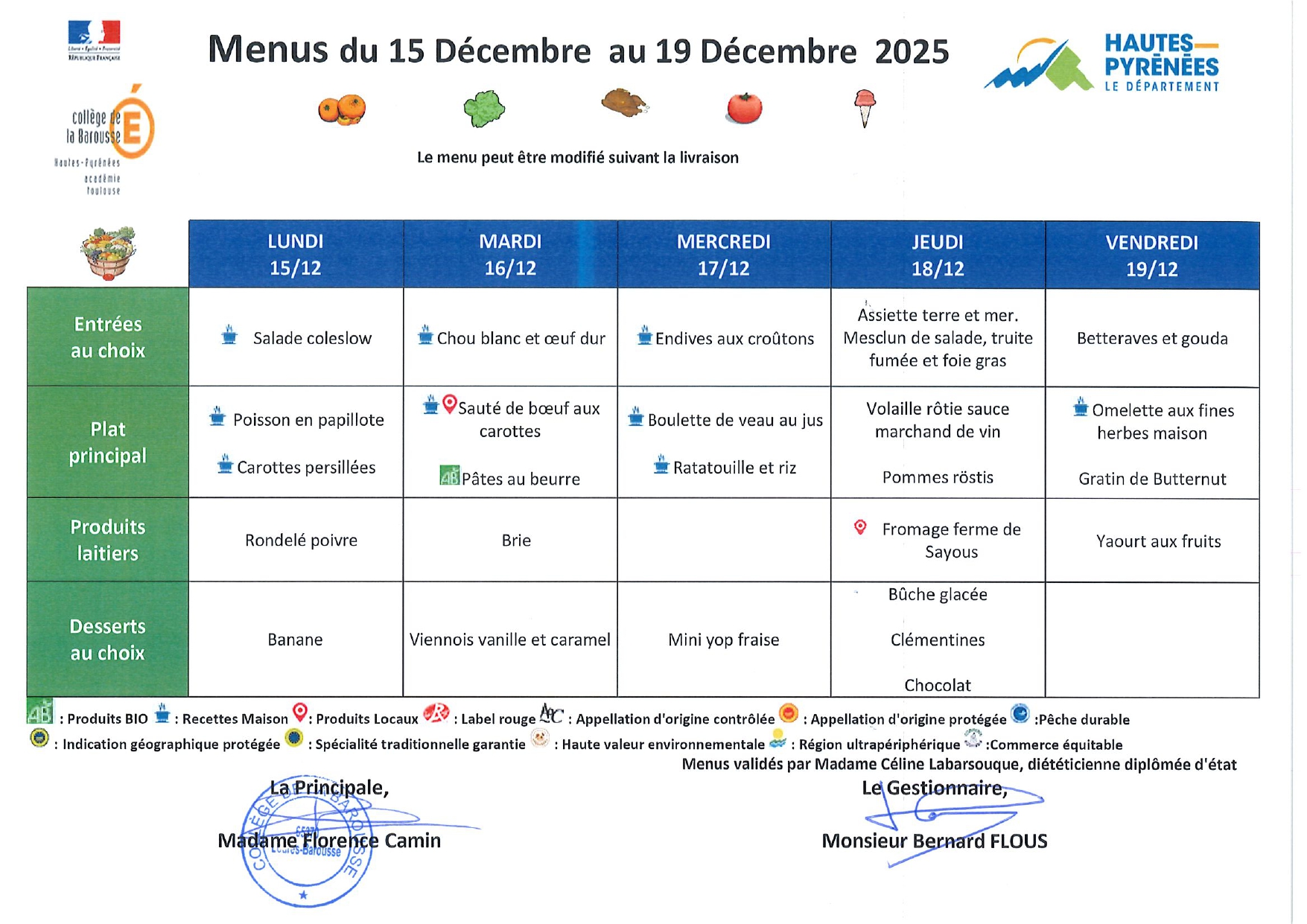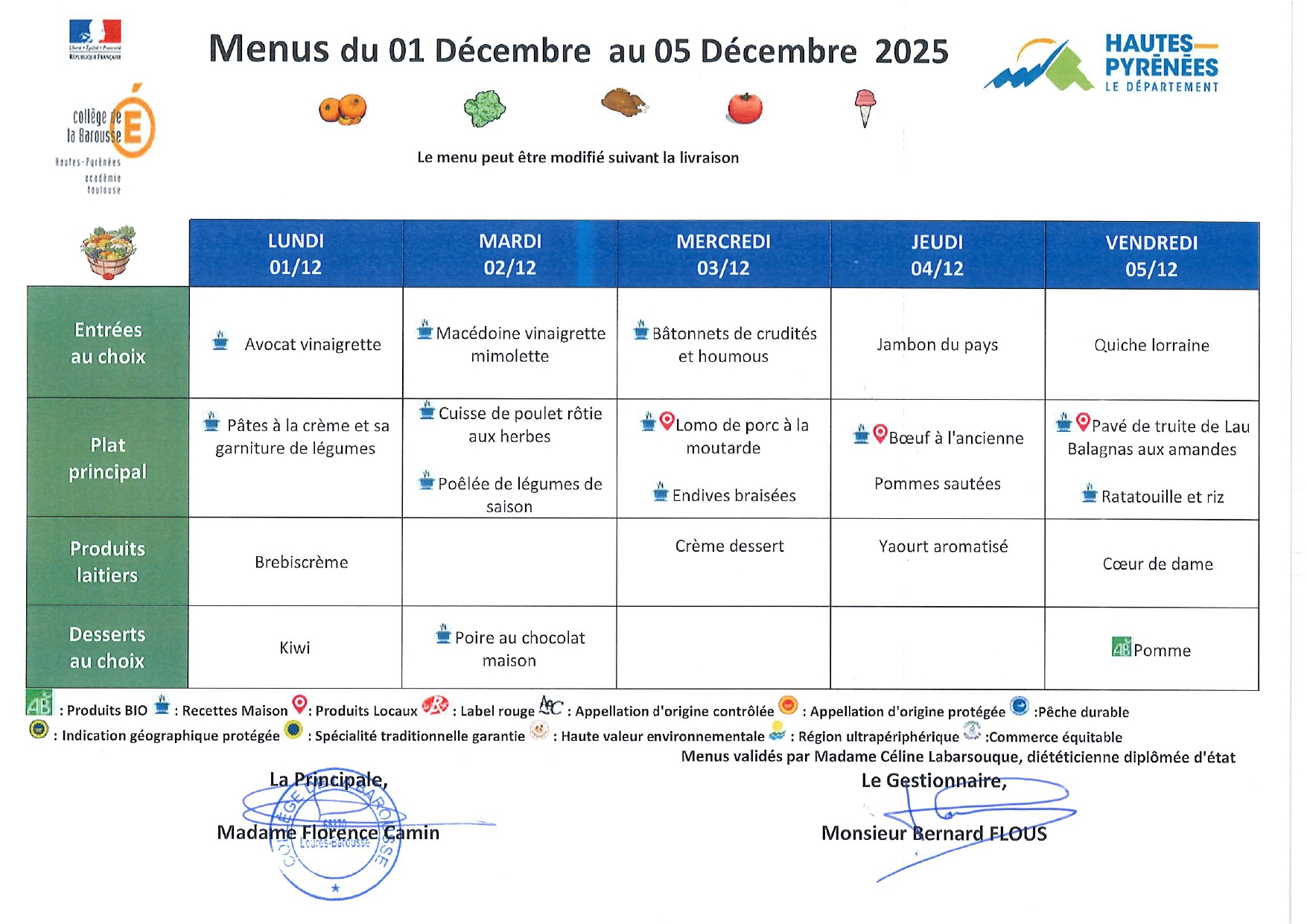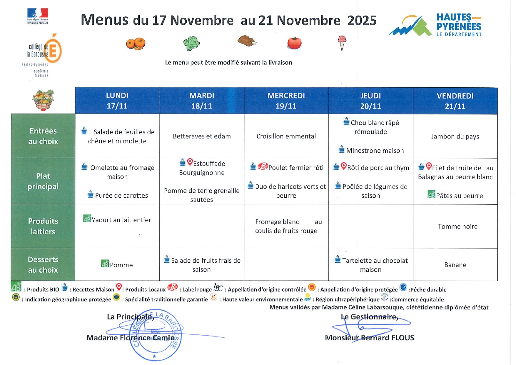 MENUS SELF période du 3 novembre au 19 décembre 2025